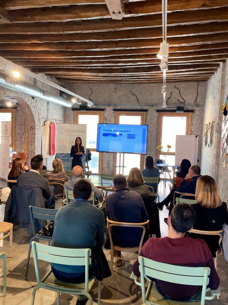 El pasado miércoles 5 de abril de 2023, Mariona Renom, una de nuestras Talent Experts en Igualada, presentó el estudio "Tendencias Salariales del Talento Digital" dentro de la jornada "Empresas Atractivas para el Talento Digital" organizada por el TICAnoia.